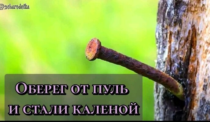 Оберег от пуль и стали каленой Оберег от пуль и стали каленой. Оберег очень необходимый не только воинам и служивым, но и тем, кто связан по работе с железом и всем, с ним связанным. Столярам, тем кто работает на заводах, а также тем, чья работа связана с опасностью от железа. Во вторник найди дерево, мужское или женское -в зависимости от того, кто совершает и накладывает оберег. В дерево вбивается каленый гвоздь, и читают слова оберега пять раз: «Заклинаю и заимаю духов Звезды Марса, его священным числом, его Ангелом Самаелем, его печатью и ангелами третьего легиона, чтобы (имя) был от стали и железа сохранен, от болезней и урона от него защищен. Чтобы железо и сталь силу свою пред ним потеряло, не ранило его и страданий не дало. Самаель внимай, Звезда Марса сияй, а (имя) от железа и стали каленой вреда не знавай. Не на день, а на век, на весь отпущенный небесами срок. Аминь, аминь, аминь», Уходят молча и не говорят о сделанном никому.