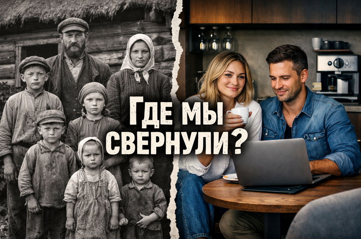 Когда говорят о «демографической катастрофе», обычно вспоминают экономику, ипотеку, нестабильность. Но есть факт, который редко обсуждают честно: ещё 100–120 лет назад до 70 % населения жило в деревнях — и именно поэтому население росло быстрее. Звучит слишком просто? А если всё действительно так — и дело не только в деньгах? Представьте обычную деревню начала XX века. Изба, печь, огород, корова. Пятеро детей — это не «много». Это норма. Семеро — обычное дело. Почему? Потому что ребёнок в деревне — это не только «расходы». Это рабочие руки. С 6–7 лет — пасти гусей.