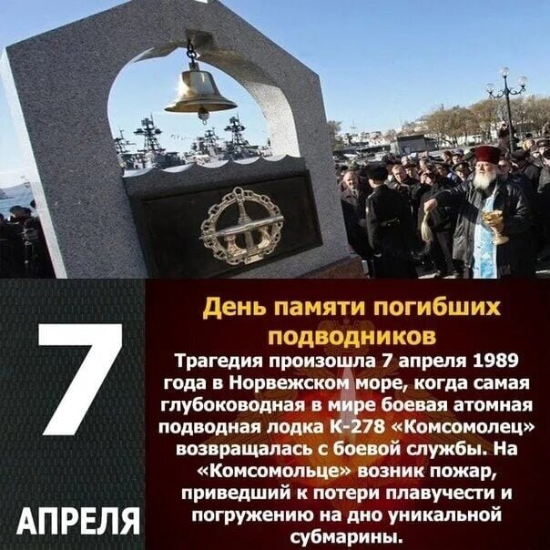 День памяти подводников АПЛ "Комсомолец", погибших в Норвежском море в 1989 году.