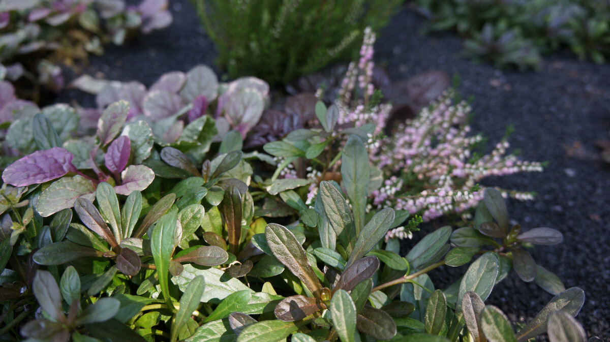 Все дело в сорте. На фотографии ниже живучка Бургунди Глоу и Шоколад Чип. Первая разрастается быстро, но не очень агрессивно. Вторая намного медленнее. Есть еще вид Дикси Чип - по поведению и форме листа похожа на Шоколад, а цвет листа красноватый, как у Бургунди Глоу.