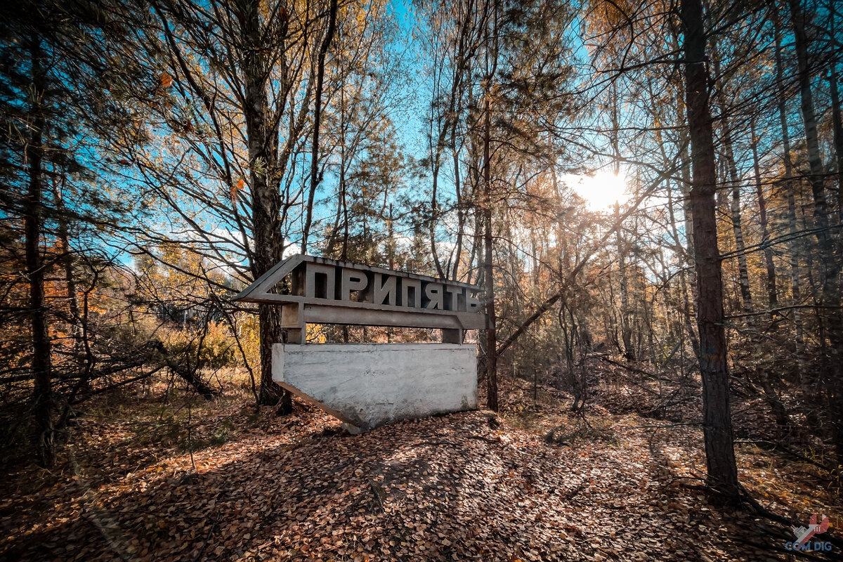 Мой маршрут в заброшенное село под названием Новые Шепеличи начался на выезде со стороны юго-западной части города, где находилась еще одна стелла Припять. Стелла, на самом деле, многострадальная. Часто она переживала нападки вандалов, вооруженных разноцветными красками. Один-единственный раз за всю историю моих походов в ЧЗО я смог увидеть ее в естественном виде и не разукрашенную.