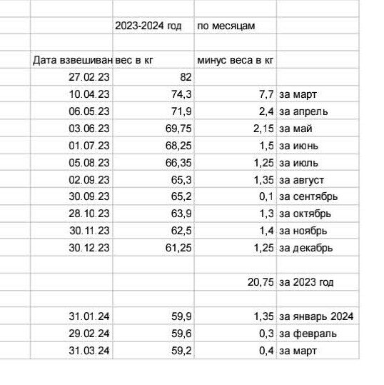 - Контроль веса у меня еженедельный