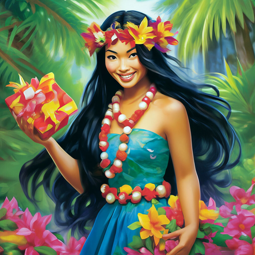 Дед Мороз - это персонаж славянской мифологии, который приносит подарки детям на Новый год. На Гавайях вместо Деда Мороза есть свой местный сказочный персонаж - Камахалола. И это женщина... Камахалола является богиней плодородия, покровительницей природы и символом гавайской культуры. Она живет на вершине горы Хуалалаи, которая находится на острове Мауи. Камахалолу изображают как красивую женщину с длинными черными волосами и яркими цветами в волосах. Она носит яркую юбку из цветов и украшена жемчугом. Каждый год 24 декабря Камахалола спускается с горы, чтобы принести подарки детям на Гавайских островах. Она едет на белом коне, который также украшен цветами и жемчугом. Камахалола оставляет подарки в ботинках, которые дети оставляют перед дверями своих домов. Дети на Гавайях очень любят Камахалолу и ждут ее прихода каждый год. Они украшают свои дома цветами и гирляндами, чтобы приветствовать Камахалолу. Когда Камахалола уходит, она оставляет на земле яркие цветы и плоды, которые напомин