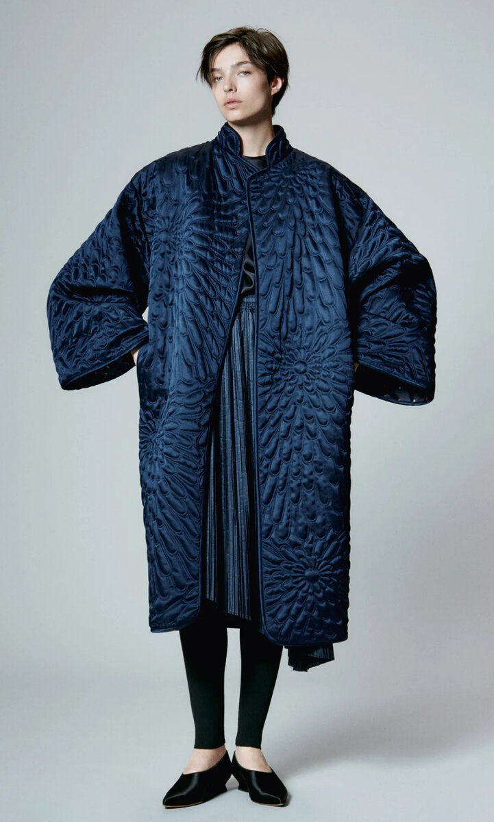 Все коллекции одежды прет-а-порте и аксессуары изготовлены в Италии согласно строжайшим критериям мастерства и совершенства. Производство тканей по большей части идет из шерсти мериноса, а также Loro Piana является главным производителем самой дорогой шерсти в мире, которую получают от перуанских викуний. Лоро Пиана стоит особняком от других брендов, этого дизайнера восхваляют за идею «тихой роскоши», одежду без логотипов и кричащих цветов. Ткани высочайшего качества, уникальные технологии, элегантные классические лекала - это все роскошный элитный бренд Лоро Пиана. Перед вами новая весенняя коллекция 2024 года, показ проходил в небольшом пространстве в японской стилизации. Кашемировый плотный серый однотонный костюм с четырьмя крупными пуговицами - почерк Лоро Пиана, сочетается с золотыми туфлями металлик. Юбка и блузка в оранжевых и синих цветах были рядом с платьем прошлого сезона "цветочная церемония". Куртка без воротника с четырьмя пуговицами из белой шелковис