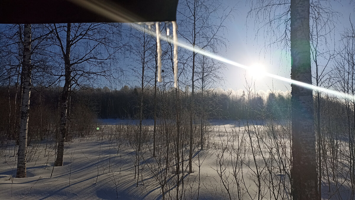 Вот и все. Пять дней на Онеге пролетели как один. Последний день - пятница, показал всю красоту зимней Карелии, хоть и по датам уже первая декада апреля. Хотя... может быть это как раз типичная картина середины Карельской весны? Когда то и у нас вторая половина марта была с ночными заморозками до минус 10 и плюсовой солнечной погодой днем, когда на льду на рыбалке люди загорали, раздевшись по пояс. Здесь раздеться с утра не тянуло. Минус 13 градусов, после практически плюсового марта , казались неоправданно жесткими. Но зато какое утро!!! Утреннее солнце всего за пару часов построило ксилофон из сосулек на крыше соседнего домика. И как я ни старался, но поймать переливающиеся краски бриллиантов заледеневших кустов и деревьев мне не удалось. Но хоть попытался. А на следующий день обещают снова снегопад и шквальный ветер. Поэтому принимаем непростое решение, наступить на горло возможной своей прощальной песне, и рыбалку сократить до пары часов, необходимых, что б снять пост