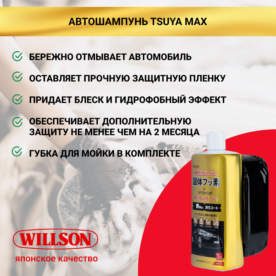 ☝🏻 Чтобы отмыть машину качественно и защитить кузов используйте шампунь Tsuya Max-Gold от японского бренда WILLSON.
