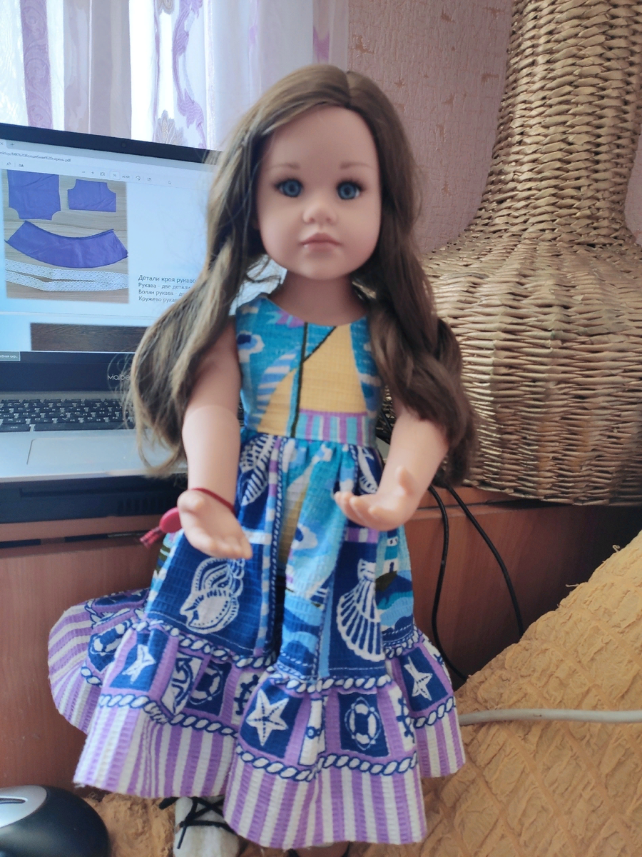 -Бааа, ну когда ты мне уже платье дошьёшь? -Машуль, ну совсем еще немного осталось. -Ты уже вторую неделю шьешь, а еще сказала , что новенькая к нам скоро приедет, а она вообще едет в одних трусиках. И что? Мое платье опять отставишь? -Ну ты посмотри сколько тут рюшечек, выбрала бы попроще, давно бы уже сшила. Я же тебе уже сарафанчик сшила. -Ага, мне сарафанчик, а у сестренок вон какие нарядные платья есть, только у меня нет -Ну потерпи еще немножко, вон уже рукавчики шью -А у меня еще и туфелек нету, посмотри до сих пор в сапожках хожу, мне уже ножкам жарко. -Машенька, ну туфельки я заказала, только их что-то долго делают, может у тетеньки заказов много. А сейчас давай сапожки снимем и будешь в носочках, тогда не будет жарко. Вот так мы их и балуем. Побегу платье дошивать, обещала сегодня дошить, так что приходите завтра, будем хвастаться, если успеем дошить. Пока-пока.