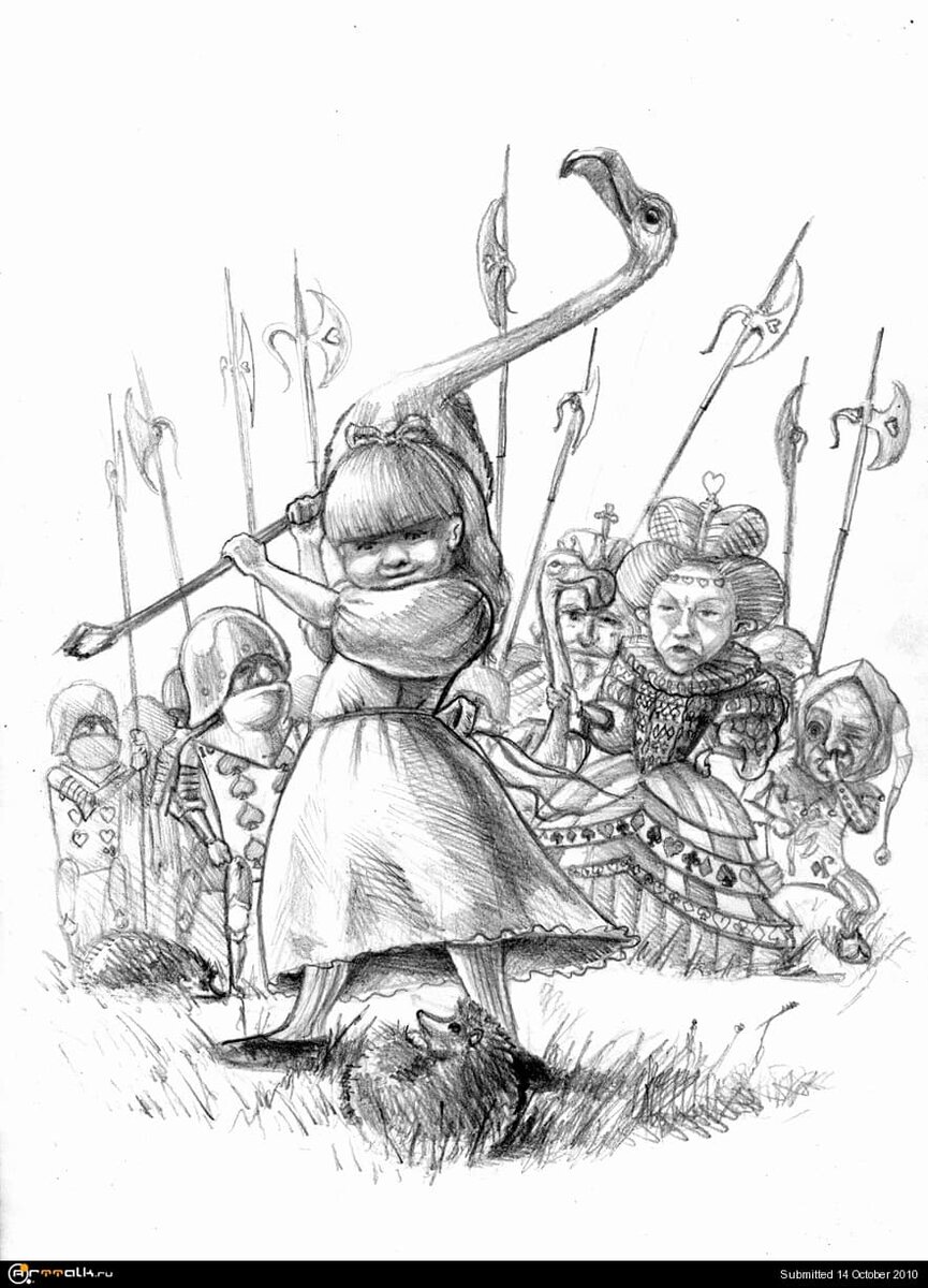 Довольно задумчиво морщить И рощи сводить на паркет. Спешите и толстый и тощий. Грядет королевский крокет! Ежами корзины набиты, Фламинго танцуют в тоске. И шеи у свиты подбриты, Вот-вот королевский крокет. Отвага, как есть, показная, Арбитр - комар в парике. Арбитр зараннее знает Чем кончится этот крокет. Все замерло. Праздник на грани. Синицей в монаршей руке Нелепый, веселый, печальный Большой королевский крокет.