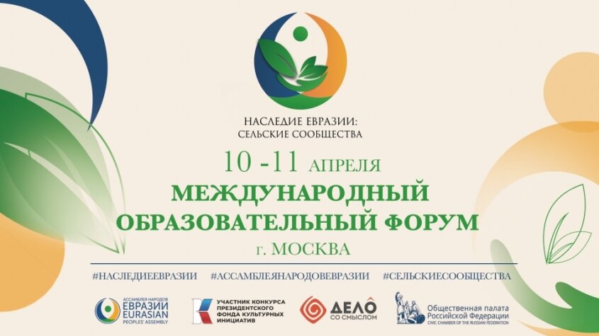 С 10 по 11 апреля Международный союз неправительственных организаций «Ассамблея народов Евразии» в партнёрстве с Центром социальных технологий «Дело со смыслом» при поддержке Президентского Фонда культурных инициатив и Общественной палаты России организует образовательный форум для участников Международного конкурса культурных практик «Наследие Евразии: сельские сообщества».