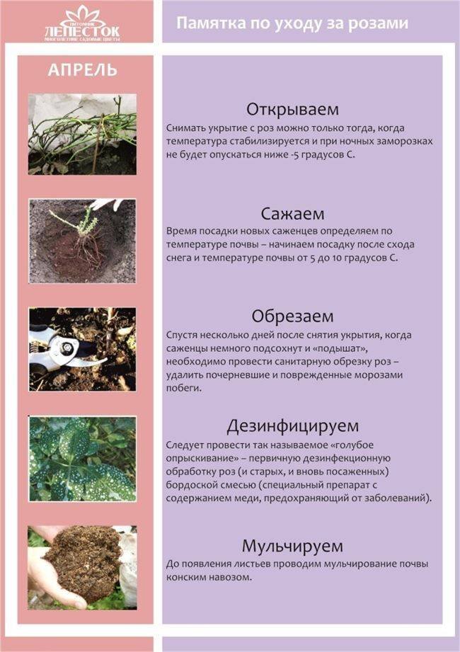 Важный момент для роз – снятие укрытий. Давайте обратим внимание, что возвратные заморозки до -5 градусов – это явление, которое терпимо для наших роз. После открытия уже все розы не укрыть, поэтому не будем торопиться, но и не будем сильно волноваться, если холода к нам вернутся. Остальное все по порядку каждый планирует сам исходя из своих климатических условий. Но все эти шаги желательно выполнить.