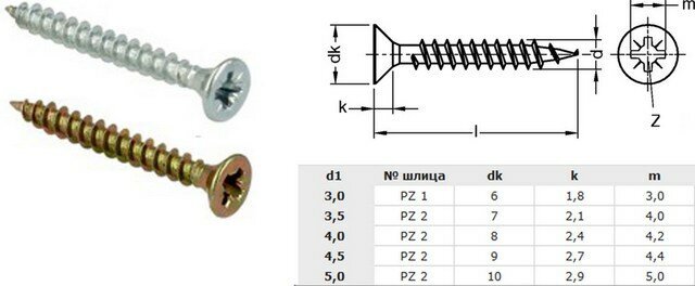 Саморез 6.0 x 40, полная резьба по дереву, потайная головка, крест. шлиц PZ3