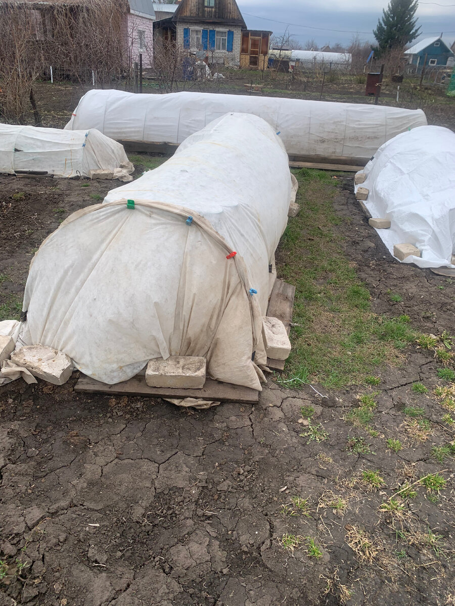 Видно как ветер раздувает укрытия. Перед дождем поухаживала за малиной, рассыпала удобрение "Фертика Весна" и прорыхлила тяпкой. Сделала обход сада, на тюльпанах появились бутоны, а нарциссы активно всходят. Это значит, что пришло время, земля достаточно прогрелась.