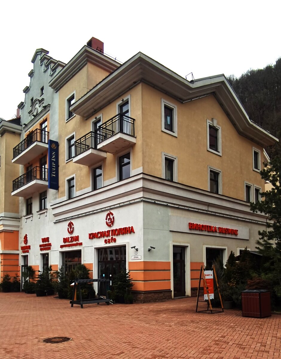 Кафе расположено на набережной Панорама в том же здании что и отель «Tulip Inn», считайте что в самом центре пешеходной прогулочной зоны курорта по соседству с винотекой «RusWine». И это соседство не случайно.