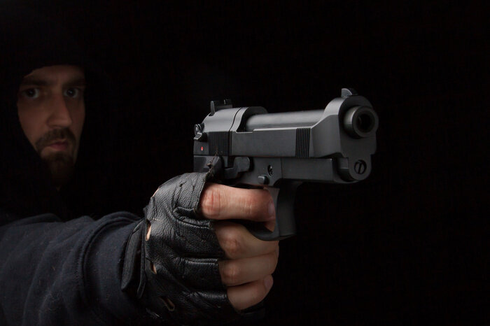 Пьяный мужчина направил пистолет в лоб проезжавшему мимо доставщику и приказал ему раздеться. Однако парень не испугался, сообщает портал E1.RU