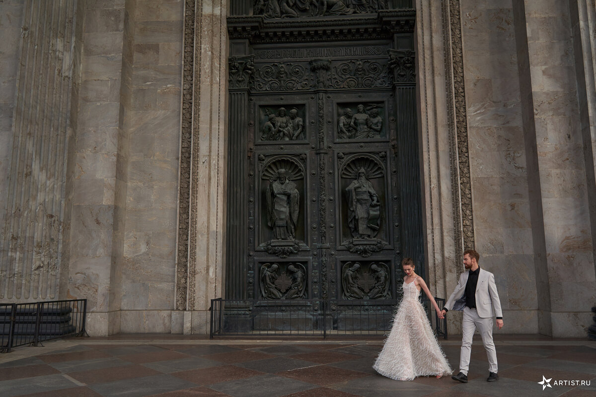 Образ невесты. Классический вариант — платье с корсетом, длинным шлейфом и кружевными деталями. Также можно рассмотреть платья с асимметричными или объемными элементами, которые добавят загадочности и романтики.