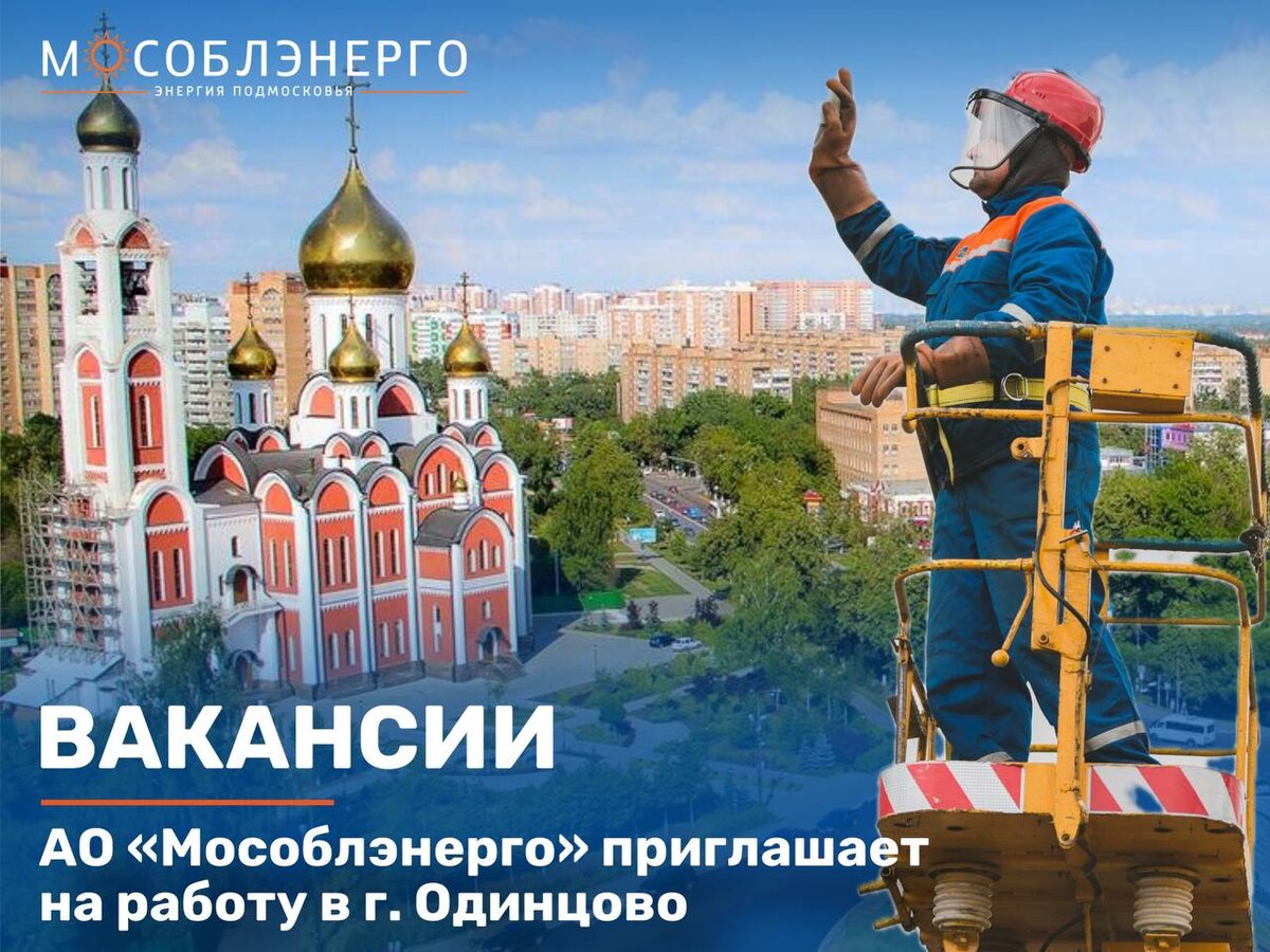 АО «Мособлэнерго» приглашает на работу в г. Одинцово: - Старшего бухгалтера; - Электромонтера по эксплуатации распределительных сетей 4 разряда строительно-монтажного участка; - Специалиста службы производственного контроля и охраны труда; - Электромонтера оперативно-выездной бригады 5 разряда; - Электромонтера оперативно-выездной бригады 4 разряда; - Машиниста автовышки и автогидроподъемника 5 разряда. Условия трудоустройства: - трудоустройство согласно ТК РФ; - конкурентная заработная плата; - добровольное медицинское страхование (включая стоматологическое обеспечение), страхование от несчастных случаев на производстве; - возможность обучения, повышения квалификации за счет средств работодателя; - надбавки за наставничество, сложность работы и т.д.; - возможности для карьерного роста; - предоставляется спецодежда и средства индивидуальной защиты; - дополнительные выплаты к заработной плате: ежегодная стимулирующая выплата к отпуску, выплаты по коллективному договору (в связи со значи