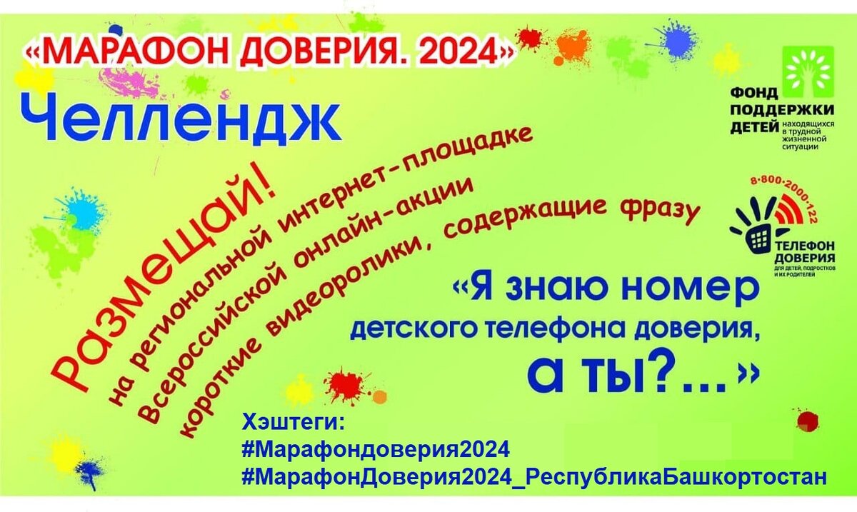Придумывай и снимай короткие видеоролики, посвященные детскому телефону доверия! Выкладывай на свою страничку в ВК с хэштегами: #Марафондоверия2024 #МарафонДоверия2024_РеспубликаБашкортостан или отправляй нам в группу https://vk.com/dtd102 и мы разместим у нас на странице. Делись ими с друзьями!