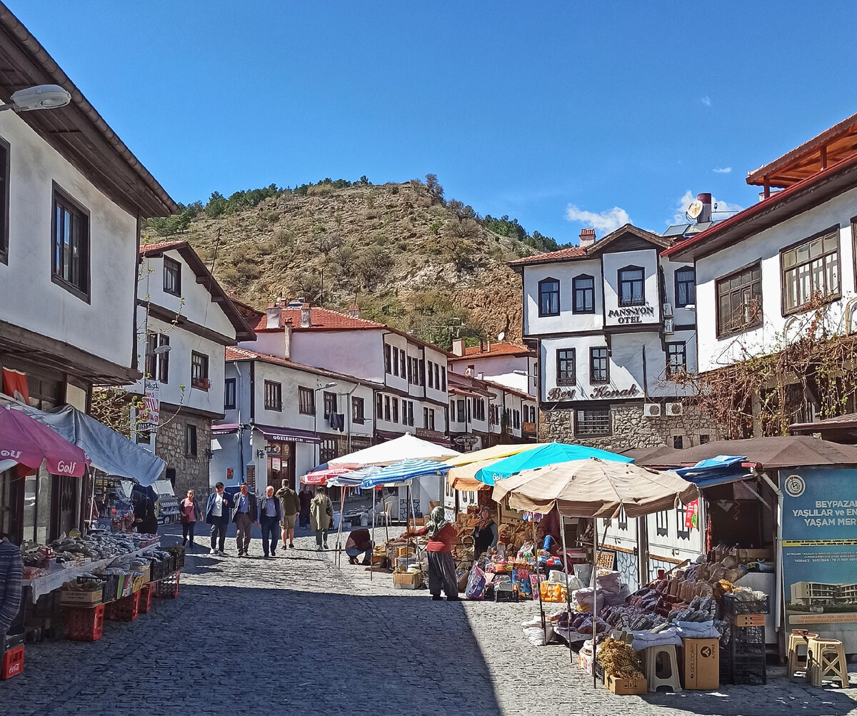 Проезжала я недавно мимо турецкого городка Бейпазары, он расположен в ста километрах на запад от Анкары и известен своими старыми особняками, термальными источниками и атмосферой старой Турции. За свою старинную застройку и историческую важность, город стоял на Великом шёлковом пути, он был включен в список ЮНЕСКО. Ну, думаю, надо заглянуть, посмотреть, что там есть. В Бейпазары небольшой исторический центр, который действительно застроен старыми османскими особняками, по-турецки их называют konak (конак). Сейчас там в основном расположены семейные отели и ресторанчики, но немало обычных жилых домов, в которых семьи живут поколениями. Часто этот город сравнивают с Сафранболу. Однако мне Сафранболу показался более ухоженным, живописным и оживлённым. Но у Бейпазары есть свои особенности. В рекламных буклетах его презентуют как город, где остановилось время. И действительно, здесь ощущение, что ты попал в прошлое, здесь как будто вовсе и не ждут туристов, а просто живут свою неспешную