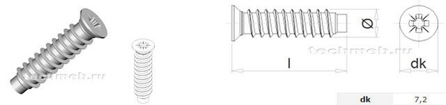 ЕВРО-винт 6.3 х 11 с потайной головкой диаметр 7.2 мм, крест. шлиц PZ2