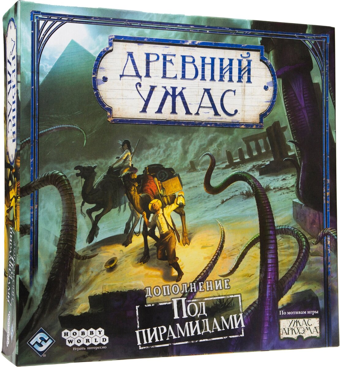 Общая информация Дополнение "Под Пирамидами" обыгрывает рассказ Г.Ф. Лавкрафта и иллюзиониста Гарри Гудини "Погребённый с фараонами" (он же "Под Пирамидами"), в котором от лица Гудини рассказывается о его побеге из-под Пирамид, где он якобы оказался в результате похищения во время его путешествия по Египту в 1910 году. "Под Пирамидами" — дополнение большое, и, по уже сложившейся традиции, оно приносит нам целое дополнительное игровое поле, а также несколько механик и правил, которые мы рассмотрим чуть ниже, хоть в целом они нам уже знакомы (если же нет — читайте другие статьи по Древнему Ужасу на этом канале). Ореол "Под Пирамидами" продолжает идею предыдущего дополнения "Таинственные руины", вновь предлагая нам побаловаться с заклинаниями-ореолами. Напомню, что, в отличие от чар и ритуалов, ореолы активны всё время, пока сыщик ими владеет. Однако ореолы имеют эффект расплаты на обратной стороне. Будьте осторожны! Особые активы Это тоже отголоски прошлого дополнения. Особые активы пре