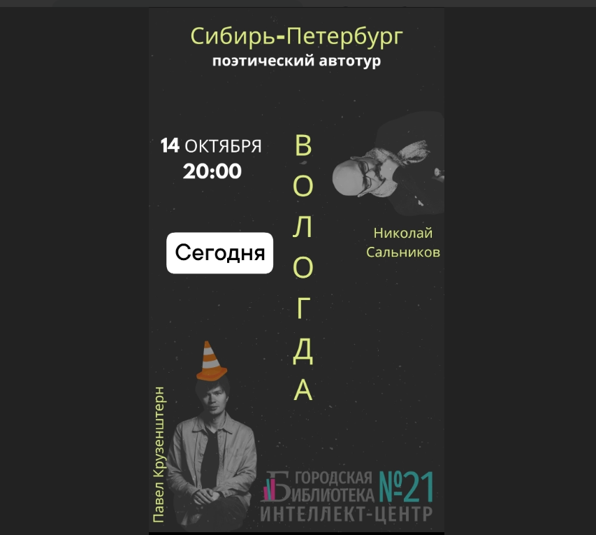 Ранним утром команда из двух поэтов выдвигалась в сторону Вологды, где вечером в библиотеке было назначено выступление. Навигатор выдал два маршрута, и один из них был на четыре часа короче, стоит ли удивляться, что именно его мы и выбрали. Оставив позади Казань и её прекрасных людей, мы приготовились к долгому пути, улыбнулись привычной стартовой песне Sultans Of Swing