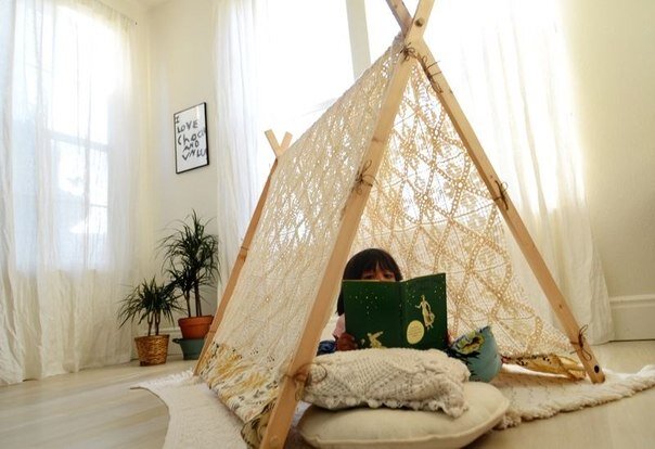 Светлый и уютный бохо - #шалаш из кружевного тюля для детской комнаты или праздника #своимируками.