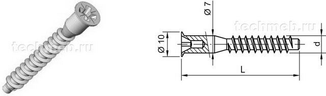 Шпилька-шуруп M10 х 50, шестигранная бочка S6, шлиц TX25