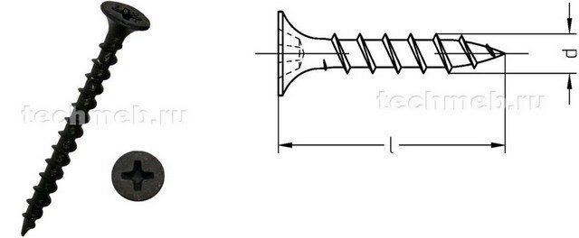 Саморез с полной резьбой по гипсокартону 3.8 x 64, потайная гол., редкий шаг резьбы, крест.шлиц PH2