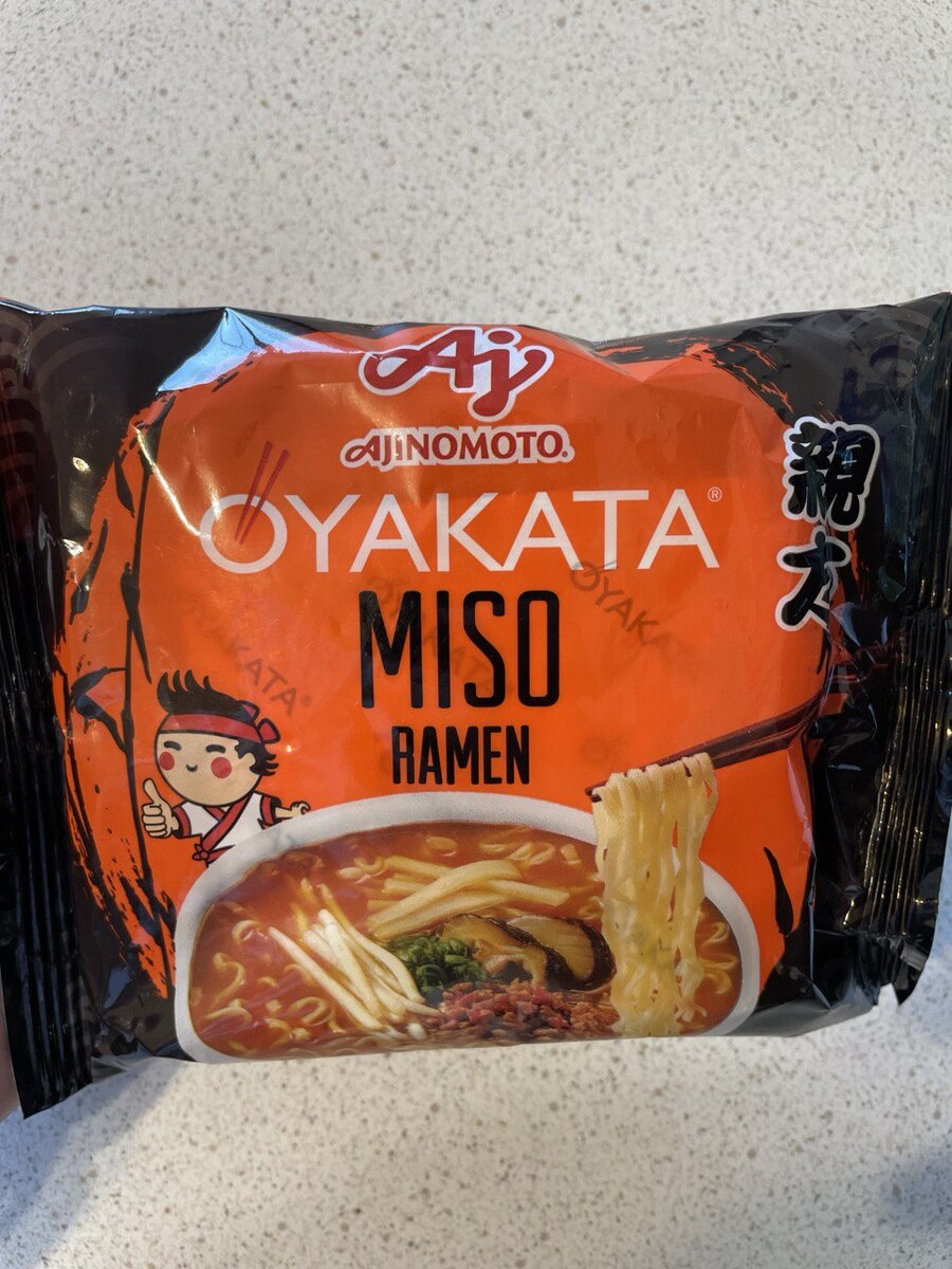 Привет. Прошло так много времени, что я успел слетать в Нидерланды, потусить с друзьями в Польше и переехать из Минска в Санкт-Петербург. Из Польши захватил на обзор Ajinomoto Oyakata Miso Ramen. Купил в Варшаве в Жабке приблизительно за 1 $. На упаковке заявлено 89 грамм, это несколько меньше, чем хотелось, одной порцией такой лапши навряд ли удастся утолить голод взрослому человеку. Большой плюс — это простое приготовление, необходимо просто на 3 минутки залить 450 мл. кипятка и накрыть. Отдельная любовь у меня к лапше круглой формы, они идеально вписываются в миску. Стоит отметить, что для удобства в упаковке только один пакетик со специями, он достаточно большой, а своим дизайном напоминает упаковку презерватива. Рамен получился классный учитывая его стоимость в 1 доллар и отсутствие варки и прочей ерунды. Я немного передержал буквально на минутку-две, но получилось круто, мне очень понравился, бульон действительно похож на мисо, лапша вкусная, не острый от слова совсем. Я бы по