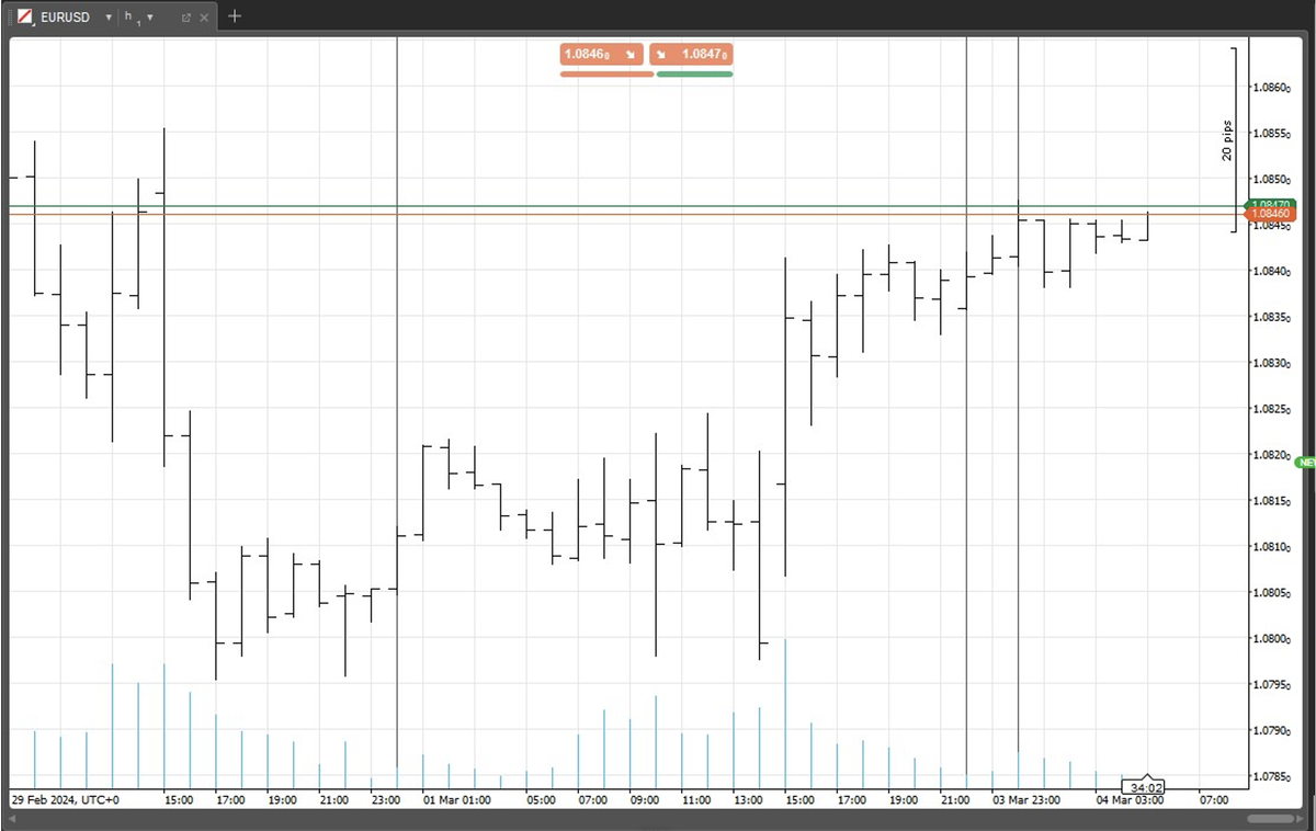 Гистограмма — это один из основных типов диаграмм, который показывает цены открытия, закрытия, максимум и минимум цены для выбранного периода времени в виде баров. Каждый столбец показывает, как менялись цены за определенный период времени. Дневная гистограмма (по умолчанию для графиков cTrader) показывает ценовой бар за каждый день. Каждый бар обычно показывает цены открытия, максимума, минимума и закрытия. Это можно настроить так, чтобы отображались только максимум, минимум и закрытие. Технические аналитики используют гистограммы для отслеживания ценового движения, что помогает принимать торговые решения. Гистограммы позволяют трейдерам анализировать тенденции, выявлять потенциальные развороты тенденций и отслеживать волатильность и движение цен. Каждый столбец на гистограмме имеет вертикальную линию, которая показывает самую высокую и самую низкую цену, достигнутую за период. Цена открытия отмечена небольшой горизонтальной линией слева от вертикальной линии, а цена закрытия отмечена