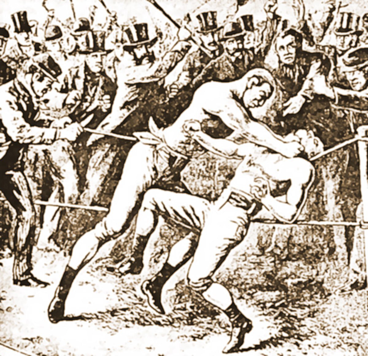 А в Англии, славной родине бокса, мордобитие не осуждалось, поединки проходили в Королевском театре Лондона на потеху публике, за деньги. И публика тоже думала о деньгах – делала ставки. А вот правила были другими. Уже позже, в XIX веке бойцов попытались удержать от добивания упавшего. До того же можно (и нужно, по англосаксонским понятиям) бить, ломать, душить, выкалывать глаза.