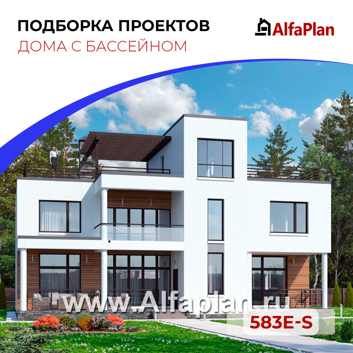 Первый проект — 583E-S «Гоген». Двухэтажный дом из газобетона с террасой в стиле баухаус. Здесь есть не только бассейн, но и сауна и бильярдная. Проект для ценителей современного и функционального дизайна. Здесь все подробности проекта и планировка