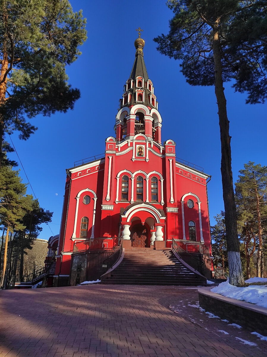 Храм Святого великомученика и целителя Пантелеймона начали возводить в 1905 году на высоком участке Ребровой балки, на Померанцевой улице (ныне ул. Ленина). Это было двухэтажное здание, выполненное из красного кирпича, трехапсидное. Над помещением храма была установлена большая глава луковичной формы, над трапезной такая же, но поменьше. Стены главного объема церкви имели сложный орнаментальный декор. Храм был двухъярусный, однопрестольный. 1912 год считается годом освящения новой церкви. Этот великолепный храм тесно связан с историей города. Многие старожилы Кисловодска крестились в этом храме, венчались в нем, обращали свои молитвы к Богу. В народе эту церковь называли Шаляпинской, так как говорили, что Ф. Шаляпин пожертвовал большую сумму денег на ее строительство и потом, часто посещал храм во время приездов в Кисловодск. Еще церковь любовно называли Красной, за красоту ее архитектурного ансамбля и красный цвет кирпичной кладки. По всей видимости, архитектором был А.Н. Клепинин. В