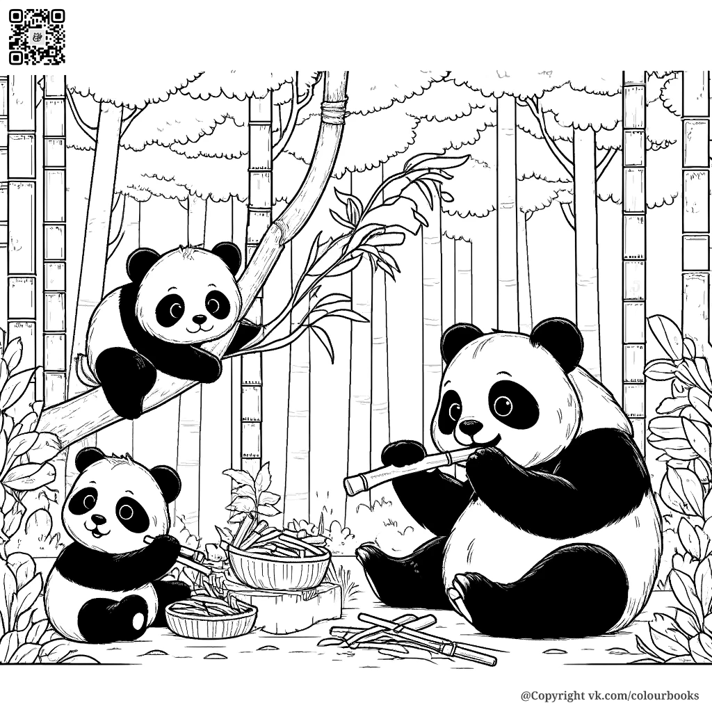 Приглашаем вас в удивительное путешествие по миру панд с нашей новейшей коллекцией детских раскрасок! Погрузитесь в жизнь этих очаровательных существ, открывая страницу за страницей. 🖍️🌺 Панды в Бамбуковом Лесу 🎋🐼 Начните свое путешествие с семьи панд, наслаждающейся бамбуком в пышном лесу. Малыш панды лазает по стволу, показывая их любовь и зависимость от этого растения. Игра в Прятки 🌲🙈 Присоединитесь к молодым пандам в игре в прятки среди лесной тишины. Их игривость и радость от игры заразительны и добавят веселья вашему дню. Учимся Лазать 🌳👶 Ощутите момент обучения, когда мама панда учит своего малыша лазать по деревьям. Эта сцена подчеркивает заботу и внимание родителей к своему потомству. Панды под Дождем ☔💧 Почувствуйте сплоченность семьи панд, когда они укрываются от дождя под большим листом. Этот тихий и мирный момент показывает их взаимодействие с природой. День Рождения Панды 🎂🎁 Отпразднуйте веселый день рождения маленькой панды в кругу семьи с бамбуковым тортом и