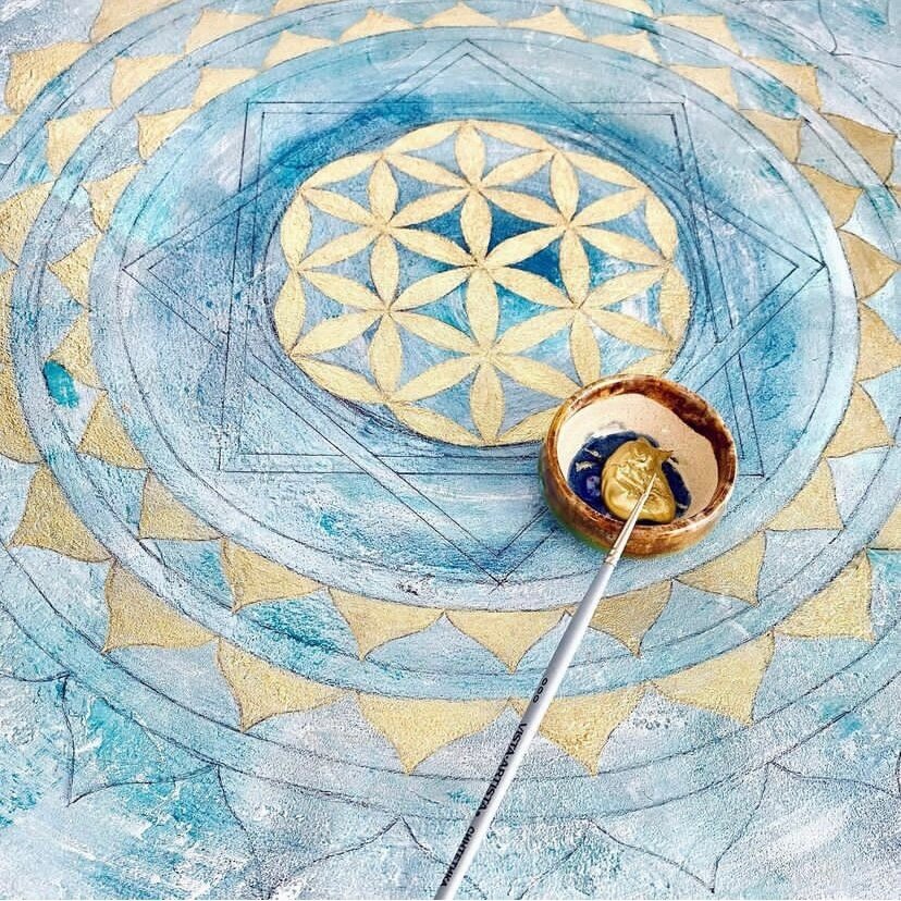 Холст, акрил, золото Сначала сделала сложный и фактурный фон, потом переношу рисунок с символами Символ, который мне очень нравится - цветок жизни Объемная текстурная живопись Роспись на фактурном фоне, фон выполнен с помощью штукатурки и текстурной пасты Акриловая краска, все оттенки я смешивала сама вручную ______________________________ Мои другие источники, где я делюсь своим творчеством: Instagram: https://www.instagram.com/solis.iness Ярмарка мастеров: https://www.livemaster.ru/solis-iness Вконтакте: https://vk.com/solis_iness Telegram: https://t.me/solis_iness Pinterest: https://ru.pinterest.com/solis_iness Boosty.to: https://boosty.to/solis.iness You Tube: https://www.youtube.com/c/PRINCIPESSAaccessories