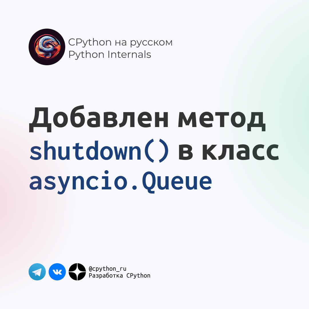 💤 Люди, чтобы решить эту проблему, используют свои "костыли", но с подачи Гвидо добавили метод shutdown в класс asyncio.Queue, который завершает очередь. При попытке получить данные из очереди или