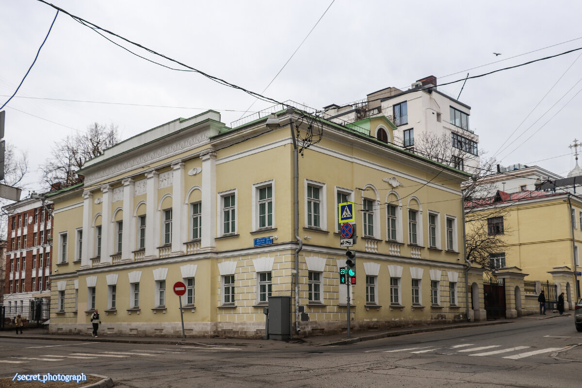 Еще один особняк в стиле позднего ампира стоит на углу Лялина и Барашёвского переулков. Без традиционного, привычного треугольного фронтона, но с центральным ризалитом, пилястровым портиком и невысоким аттиком.