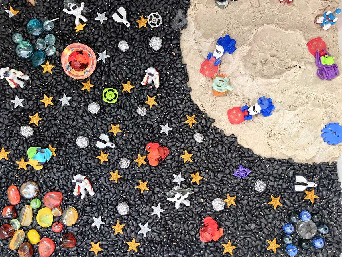 ⭐️ Основа космоса - черная фасоль, а кусочек Луны - кинетический песок.