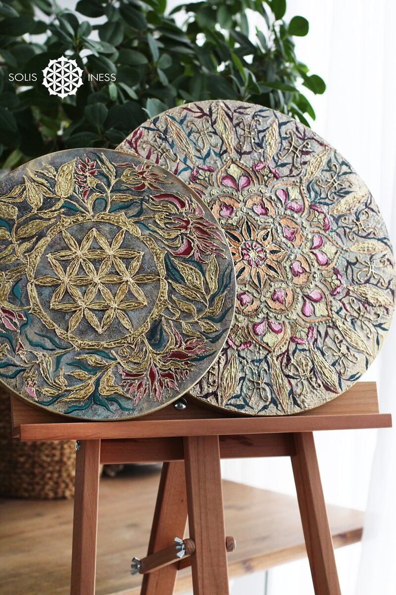 В 2022 году я увлеклась созданием картин мандал в объёмной технике Основа создается с помощью мастихина и штукатурки Размер картин на фото 40см и 32см Обе картины есть в наличии их можно приобрести Их можно вешать на стену или ставить на комод по-отдельности или в комплекте с другими панно Акрил / Холст / 40см / 2023г ______________________________ Мои другие источники, где я делюсь своим творчеством: Instagram: https://www.instagram.com/solis.iness Ярмарка мастеров: https://www.livemaster.ru/solis-iness Вконтакте: https://vk.com/solis_iness Telegram: https://t.me/solis_iness Pinterest: https://ru.pinterest.com/solis_iness Boosty.to: https://boosty.to/solis.iness You Tube: https://www.youtube.com/c/PRINCIPESSAaccessories