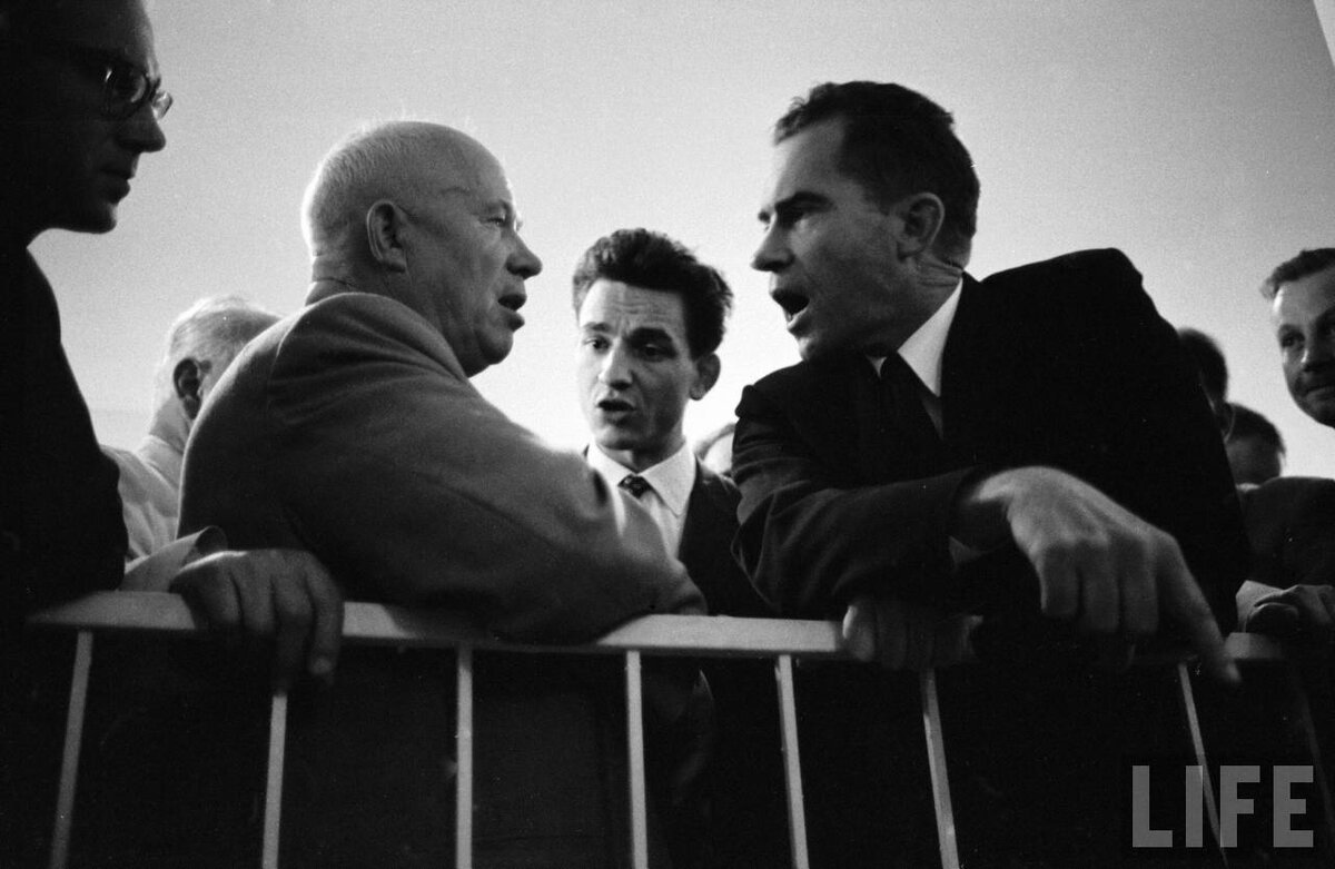Первая официальная поездка прошла в июне 1959 года, когда Никсон был еще вице-президентом. Хрущёв повёл его на выставку с макетами американских домов и высказался о низком качестве и высокой стоимости жилья в Америке. Никсону стало обидно за соотечественников, и он упомянул, что вырос в простой семье, помогал отцу в лавке, а в итоге стал вице-президентом.