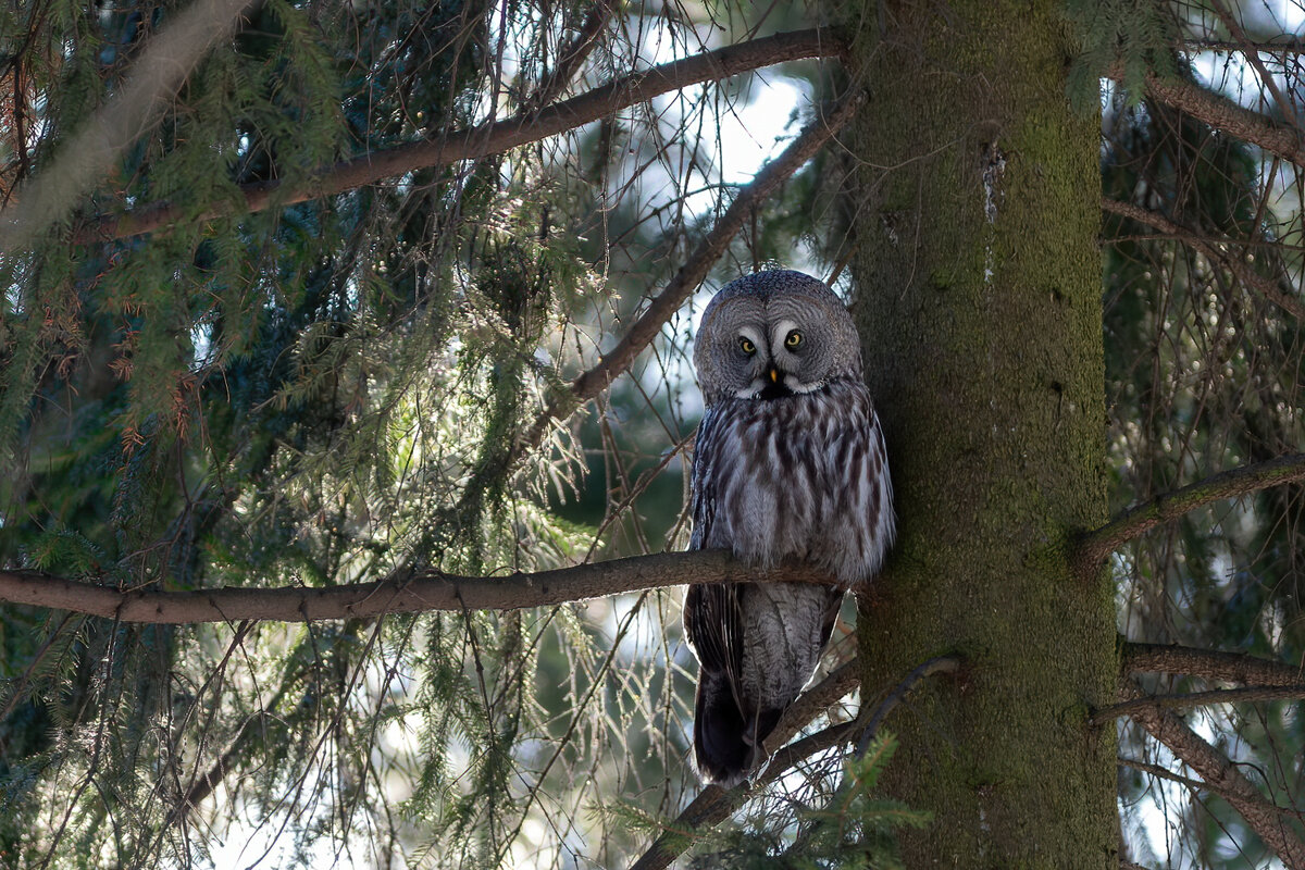 Бородая неясыть - крупная и очень красивая сова является крайне редким гостем в Москве, тем более в черте города. Однако этой зимой пернатая красавица решила обосноваться практически в центре города - в Главном ботаническом саду им. Цицина. Конечно, тут же ботсад стал местом паломничества всех бердвотчеров города, ведь снять бородатую неясыть - большая удача! Желтоглазая красавица абсолютно не реагировала на толпу людей с длинным, направленными на неё объективами, и занималась своими важными совиными делами, пушилась и прихорашивалась Почему сова обосновалась в городе? Возможно потому, что в городских парках для неё есть большая кормовая база. Зимой жители подкармливают мелких птиц, под кормушками кушают мышки, поэтому для совы найти пропитание в городском парке проще. Но также для дикой птицы город - это стресс. Поэтому, как я понимаю, для совы зимовка в городе - это некий компромисс между наличием еды и высоким уровнем стресса. Зима завершилась для бородатой неясыти благополучно,