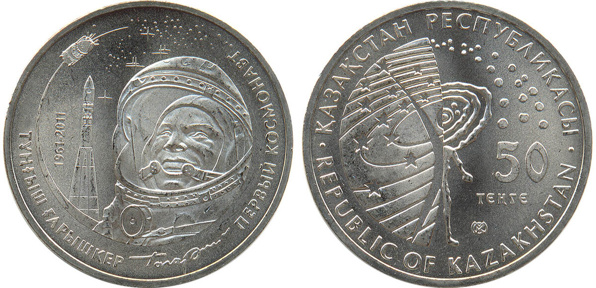 Юрий Гагарин на монете Казахстана. Обзор 50 тенге 2011 года.