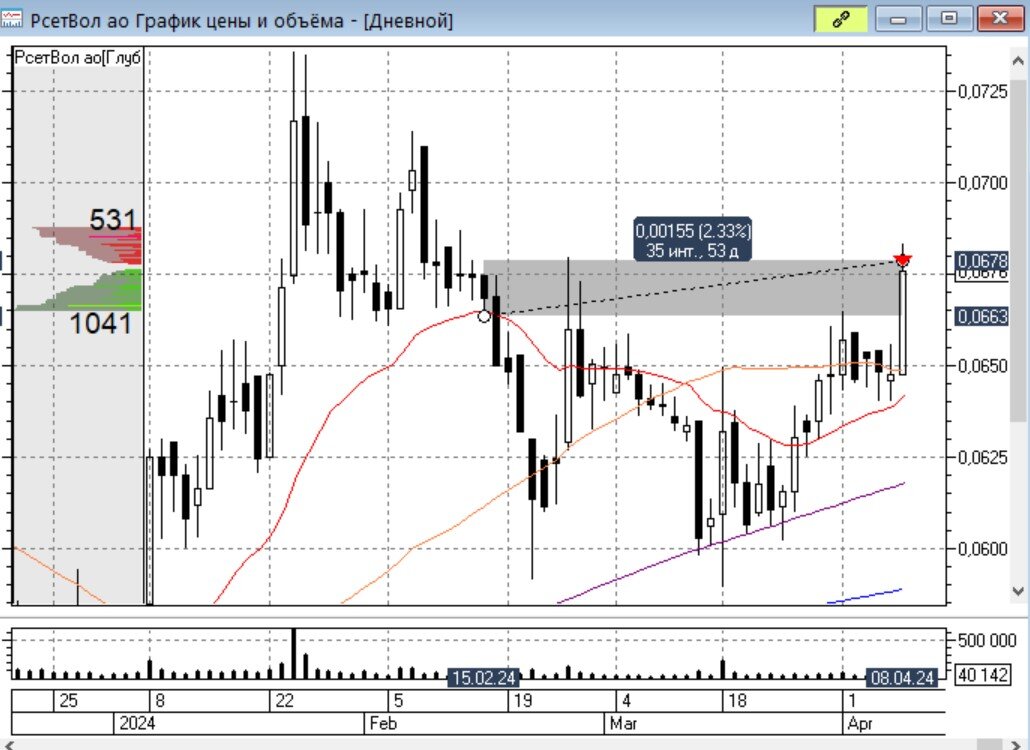 Ловим шпильку по акциям РоссетиВолги, профит составил 2,3%. Аналогично ловим восходящий импульс на акциях Диасофта, фиксируя прибыль в 1,6%. Сегодня возобновилась торговля акциям ГМКНорникеля после сплита. Покупаем данную бумагу. На восходящем импульсе продаем акции Магнита с прибылью в 1,5%.