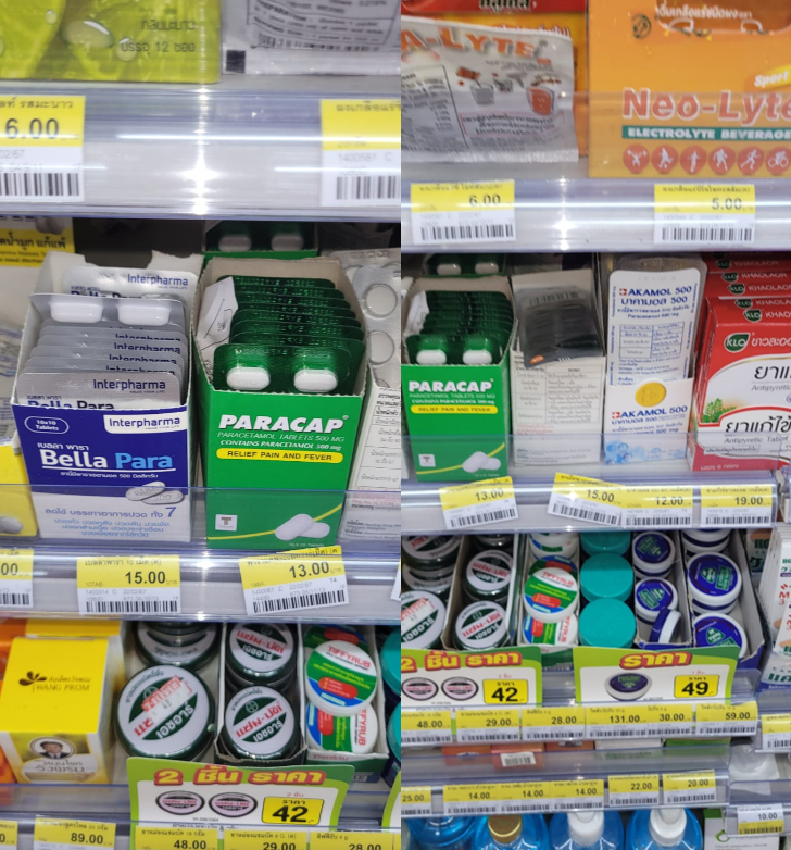 В этой статье я хочу поделиться с вами информацией о самых популярных лекарствах и биологически активных добавках (БАД) в Таиланде, особенно на острове Пхукет. Вам не обязательно отправляться в аптеку из-за головной боли, простуды или дизентерии. В каждом магазине на острове Пхукет, таком как 7/11, Big C и других, вы сможете найти необходимые для вас препараты. В этой статье я предоставлю описания лекарств, которыми мы сами пользовались. PARACAP - аналог нашего парацетамола. BELLA PAARA- для снятия головной, зубной, мышечной и менструальной боли, а также болей в спине и при простуде. ACAMOL/MAYPARA - анальгетик с противовоспалительным и жаропонижающим эффектом, облегчающий головную, зубную, менструальную боль, боль в ухе, горле, лихорадку, простуду и мышечные боли. GOFEN - ибупрофен. ПРИ ДИЗЕНТЕРИИ И ОТРАВЛЕНИИ. Электролит Royal-D- восполняет потерю жидкости и электролитов, устраняет повышенную кислотность, способствует улучшению метаболизма, помогает бороться с похмельем. Хотя мы редк