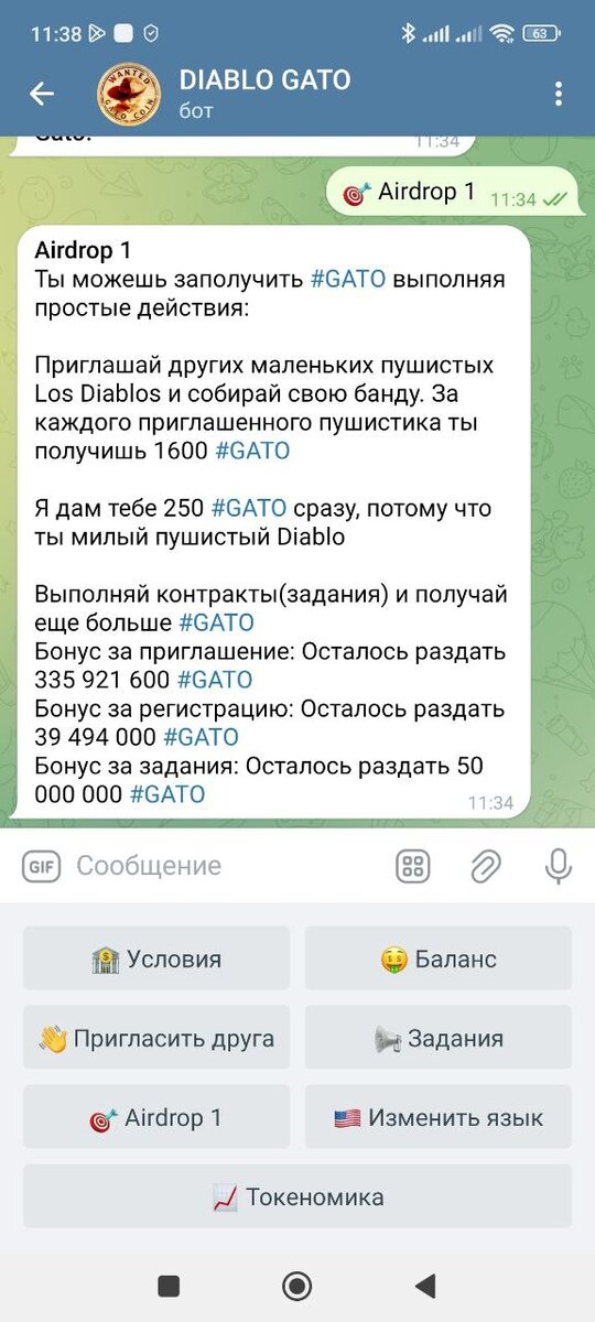 Привет ребятушки! Сейчас расскажу вообще о простейшей штучке, тут даже тапать не нужно, просто за вступление вам капает на кошелек монета $Gato В разделе баланс можно привязать свой телеграмм кошелек (рекомендуется привязывать TonSpace bkb Tonkeeper). В разделе "Задания", есть пара небольших заданий, типа репоста за которые тоже дают монеты, так же можно пригласить друга, за которого тоже прилетит монетка! Рекомендую на всякий случай привязывать пусты кошельки, всякое бывает, для подобных раздач лучше не рисковать. Переходим по ссылке и получаем монетки. Да прибудет с вами сила 🙌