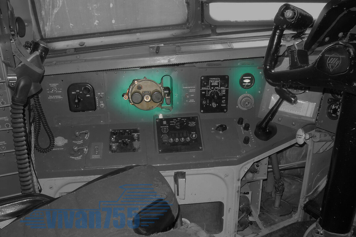 Сегодня на снимке бокового пульта командира выделены кислородный прибор КП-24М с индикатором потока ИП: