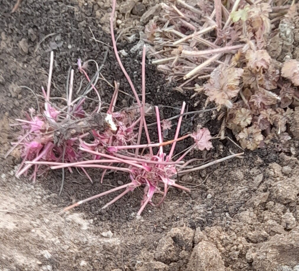 Первыми делю geiheri. Каждую весну они почти все у меня выпирают из земли - выкапываю и углубляя яму, обратно сажаю. Если хочу размножить - разламываю на части. Вот выкапываю, стряхиваю грунт и руками ломаю. Легко отделяются части.