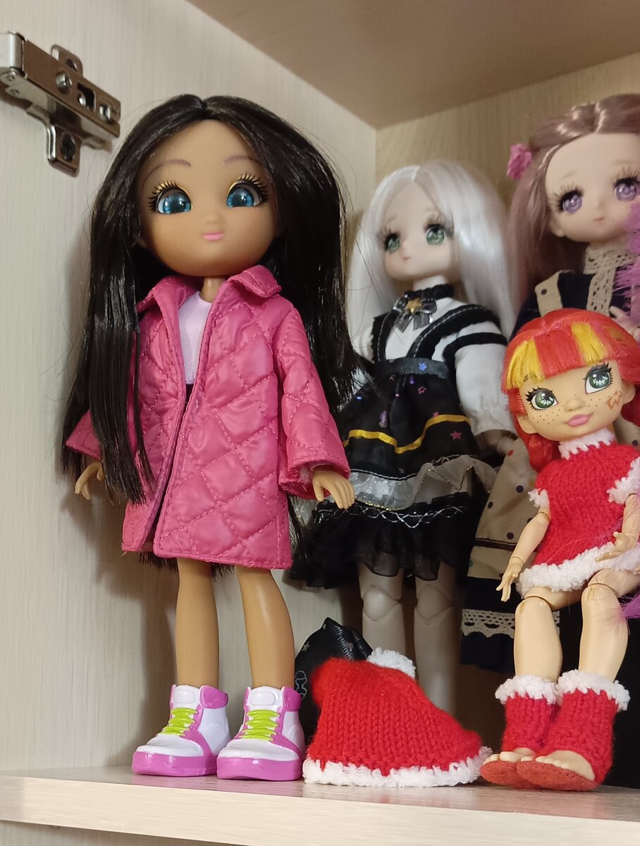 У моих куколок наконец-то появился свой «домик», даже, можно сказать, многоквартирный дом — целый шкаф. И в нем на самой верхней полке стоят они — стражи кукольного шкафа. Они пристально наблюдают за всеми, кто проходит мимо. Никто не спрячется от их зоркого взгляда. Они — это две милашки от «Unique Eyes». Да-да, это те самые девочки, которые «следят за тобой» Первую девочку, брюнетку, я купила уже довольно давно. А ее подружку-блондиночку — вчера в ДМ. Мне как раз пришел промокод на скидку, решила им воспользоваться. 🙂 Тем более все равно планировала покупать вторую. Коробка у этих кукол очень приметная: яркая и блестящая. В упаковке только кукла. Больше ничего в комплект не входит. Куколка одета в розовое платье с пайетками, «джинсовый» плащик и сапожки. Кстати, сапожки разные: на левую и правую ножку. Прошивка средненькая. Не сильно густая, но по всей голове, и сама голова окрашена в цвет волос. При расчесывании волосы не лезут и не путаются. Кукла не шарнирная. Руки не сгибаются