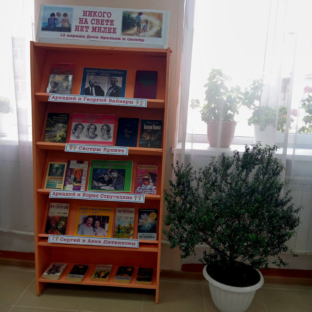 На ней экспонируются книги, написанные писателями-братьями и сестрами, приуроченная семейному празднику – Дню братьев и сестер, который отмечается 10 апреля