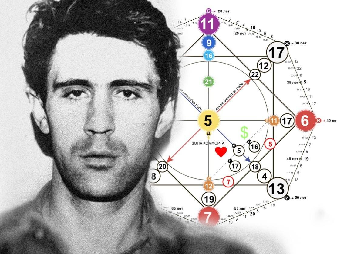 Головкин Сергей (26.11.1959) - серийный маньяк, орудовавший в 80-90 годы в Советском Союзе. Его жертвами были исключительно дети. О зверских подробностях в этой статье мы углубляться не будем, но если интересно, вы сможете сами найти много информации в интернете. Составляем матрицу, и первое что мне бросается в глаза, это наличие агрессивных арканов. Агрессивными они становятся, конечно же , при проживании их в минусовом проявлении. Это и 7,11 и наличие 16,15 энергии. Начнем с детства Сергея. Как он сам говорил ни раз, к нему проявлял насилие его отец, всячески истязал физически и издевался морально, что оставило глубокий след в последствии на психике Головкина младшего. В детско- родительской карме мы можем видеть 21 энергию, что говорит об ограничивающих моментах в детстве Фишера, и 13 энергию , которая дала трансформирующие последствия на неокрепший ум. 8 энергия привносит ощущение несправедливости ,он чувствует себя обманутым, несправедливо наказанным, что в дальнейшем перерасте